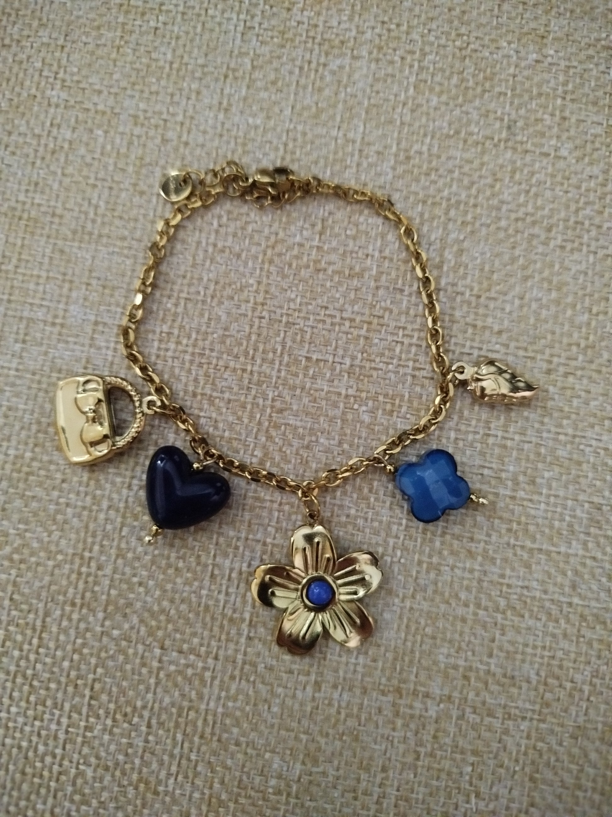 Découvrez le Bracelet Orlane, une création délicate en acier inoxydable doré qui allie élégance et durabilité. Ce bracelet charmant arbore une breloque fleur accompagnée de touches bleues qui ajoutent une note de couleur raffinée. Parfait pour sublimer votre poignet au quotidien ou pour une occasion spéciale, il saura séduire les amateurs de bijoux intemporels avec son design épuré et ses détails soignés.