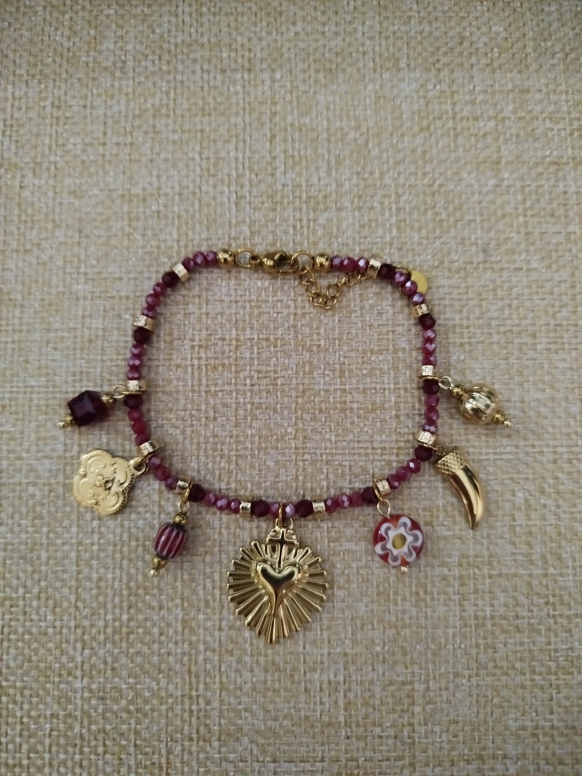 Découvrez le Bracelet Zola Rouge, une création élégante qui allie sophistication et polyvalence. Confectionné en acier inoxydable doré, ce bracelet combine des perles de résine rouge avec des breloques variées aux finitions rouge et dorée. Un accessoire intemporel qui s'adapte à tous vos styles et occasions, pour une touche de raffinement au quotidien.