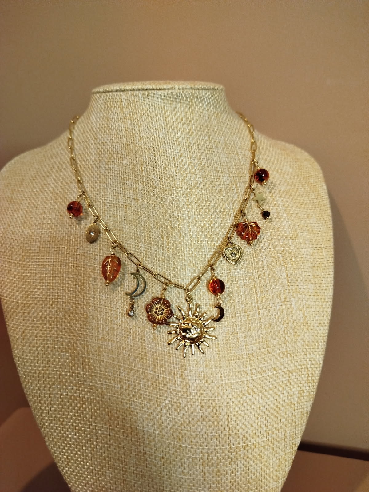 Découvrez le collier Olivia, une pièce élégante confectionnée en acier inoxydable doré. Ce bijou raffiné associe des breloques aux teintes chaudes marron et dorées, créant une harmonie de couleurs intemporelle. Parfait pour sublimer vos tenues au quotidien ou pour une occasion spéciale, ce collier allie durabilité et style avec une touche de sophistication.