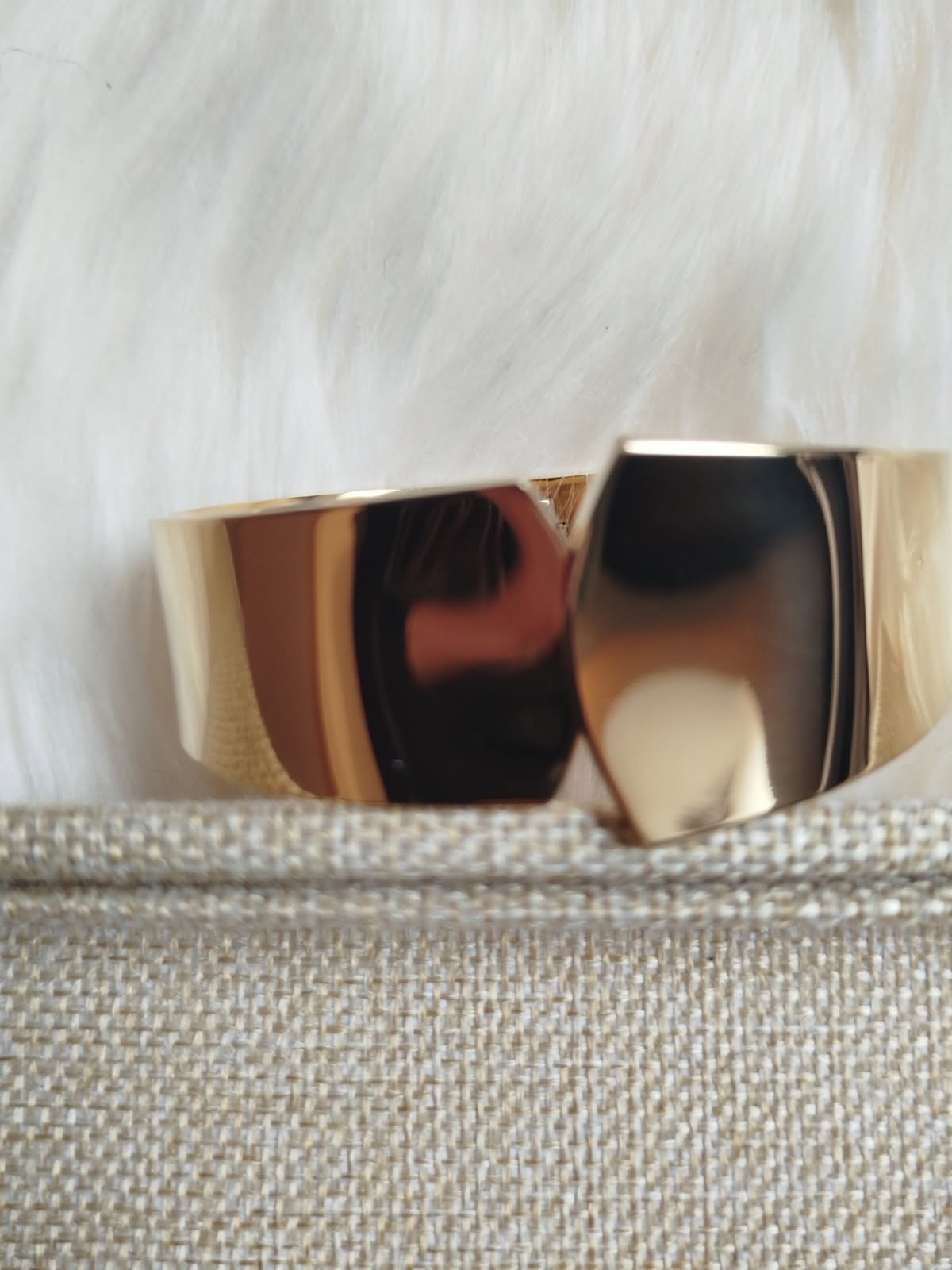 Bracelet rigide en acier inoxydable doré, conçu pour s'adapter à votre poignet. Ce jonc élégant allie durabilité et style intemporel, parfait pour accompagner vos journées avec grâce et assurance.