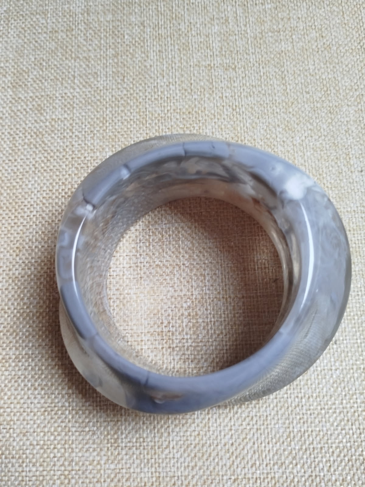 Bracelet rigide aux teintes chaleureuses gris et de blanc, confectionné en résine. Avec un diamètre de 6,5 cm, ce jonc épousera délicatement votre poignet pour un style naturel et intemporel.